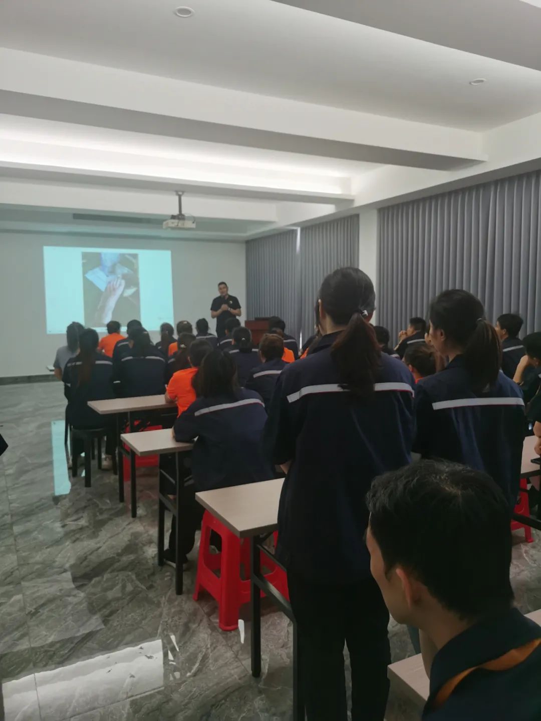 接下來各車間小組的班組長,對每一組容易發生操作失誤和需要注意的地方做了重要的提醒和操作培訓。。周總和葉總也發表了重要講話,叮囑每位員工一定要提高安全意識,保護好自己。大力宣傳“安全第一,預防為主”的安全方針!