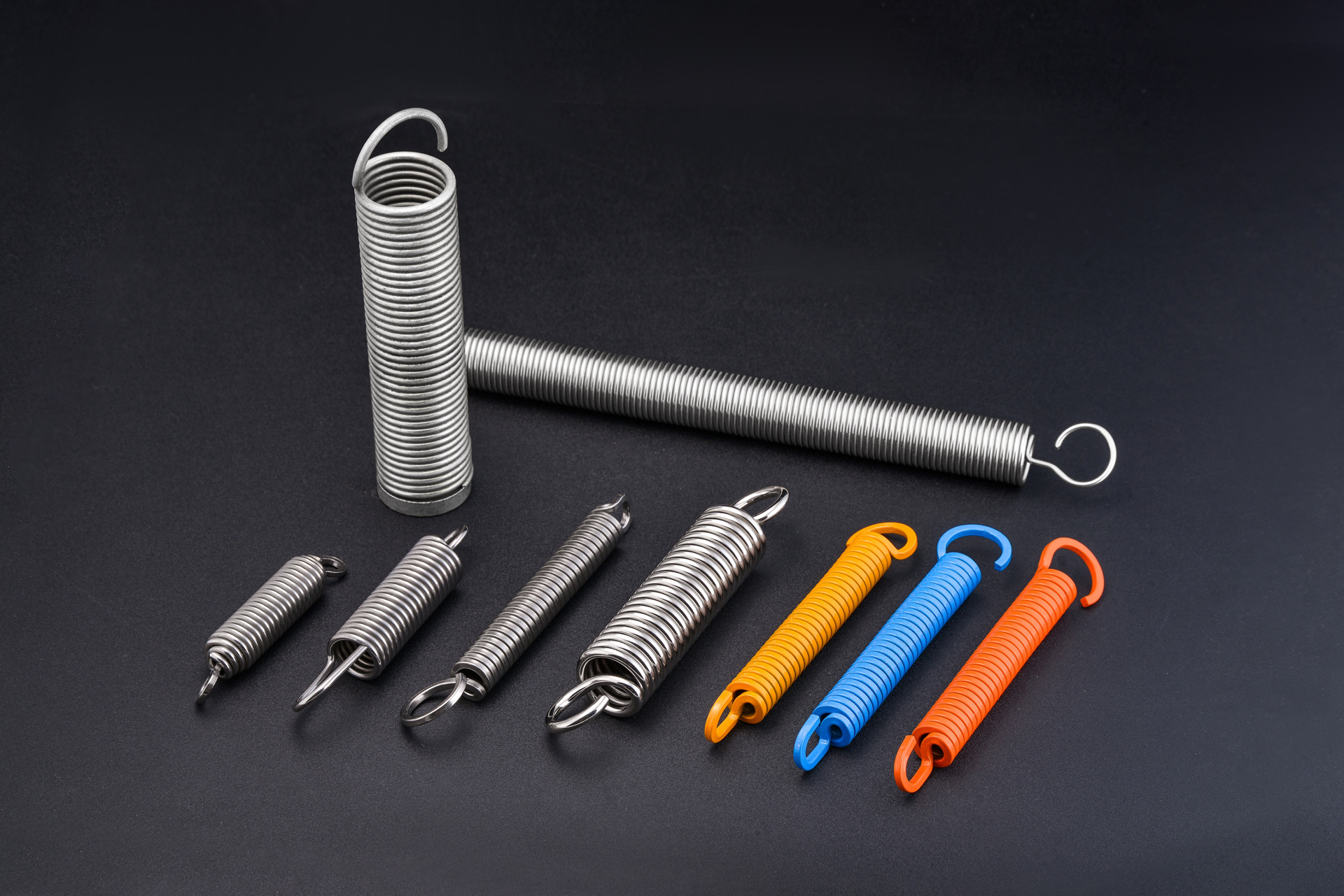 耐高溫拉伸彈簧、帶鉤圓柱螺旋拉伸彈簧,無鉤圓柱螺旋拉伸彈簧,常見的鉤包括半圓鉤環、圓鉤環、圓鉤環壓中心、偏心圓鉤環、長臂小圓鉤環、長臂半圓鉤環、可調式鉤環以及可轉式鉤環等。